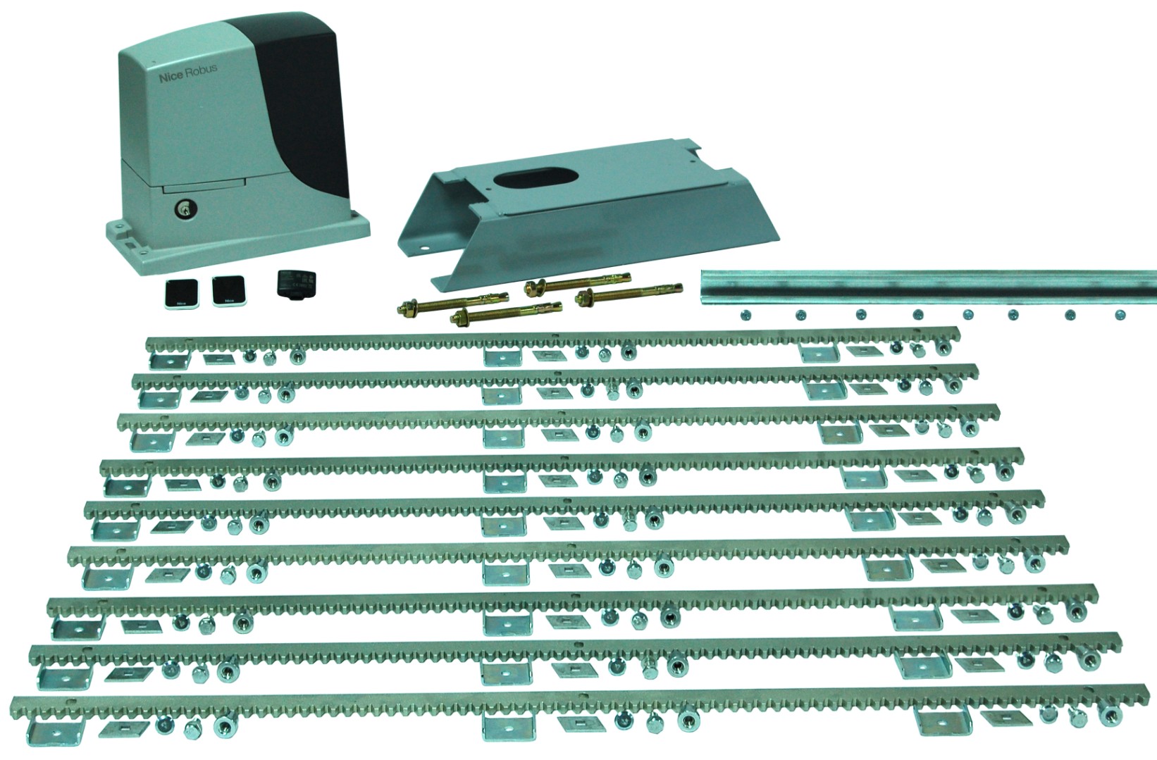 Для Екатеринбурга и других городов Уральского федерального округа, где погодные условия могут быть крайне переменчивыми, комплект для автоматизации панельных откатных ворот 7,5 м от GL станет надёжным решением. Система рассчитана на устойчивую работу при низких температурах, осадках и сильном ветре — в комплекте привод Nice из Италии (модель Road400 или Robus600 в зависимости от длины ворот),встроенный блок управления, приёмник и два пульта дистанционного управления. Также в комплект входит оцинкованная зубчатая рейка Alutech с полным набором крепёжных элементов.